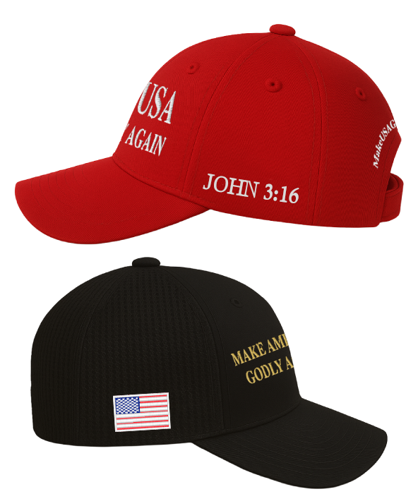 Three styles and colors to choose from. Today is the day to join in this mission and movement to “Make USA Godly Again.”